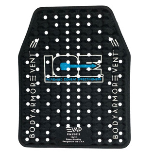Body Armor Vent EVAP Technology™ is the patent-pending evaporation and ventilation technology found in all of our vent panels. Our I.C.E. and B-24 panels create a continuous airflow between your torso and body armor. Cool air is drawn in, and your own breathing pushes out hot, humid air. This effective evaporative cooling, moving air over moisture, works just like your home AC! Our proprietary foam-filled, vertical air channels force airflow upwards and through horizontal vent holes to enable true evaporation of sweat from behind your armor. This keeps your body's temperature down in the summer and your body much drier and warmer in the winter.