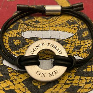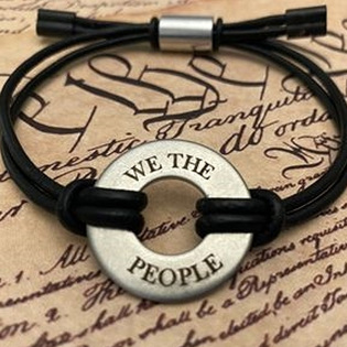 Our FREEDOM BANDS consist of our Stainless Steel ‘Freedom Rings,’ hand-stamped and laser engraved with Constitutional, Patriotic, and Faith-based mottos. Held together by a custom-sized genuine leather cord and aluminum sizer and capped off with copper, gunmetal glazed, double barrel cord ends and tension grasp rings.